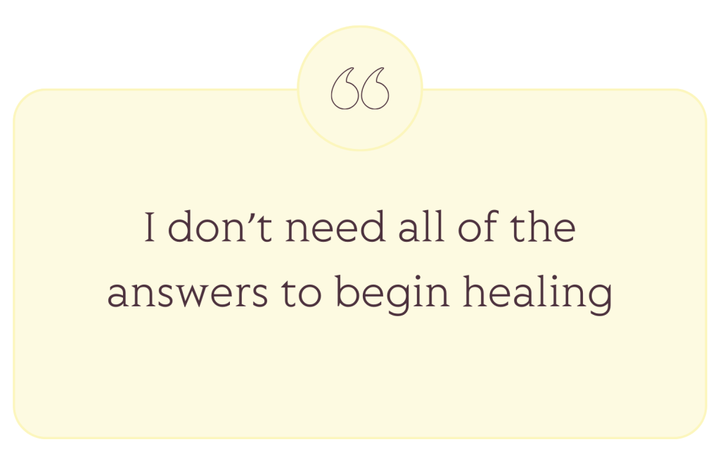 - Repeat: I don’t need all the answers to begin healing