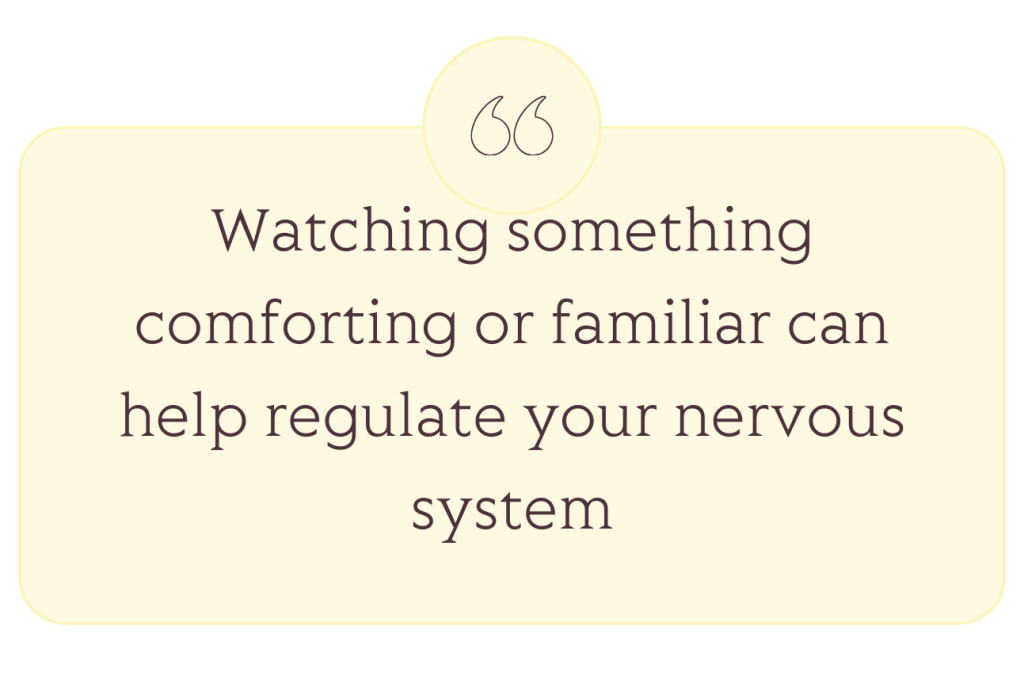 Watching something comforting or familiar can help regulate your nervous system when emotional overload is high.